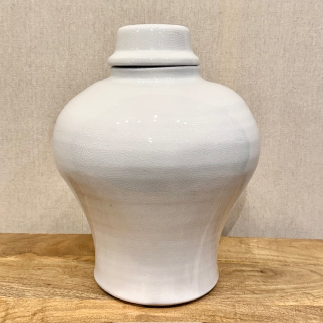 11" Round x 14-1/2"H Terracotta Cachepot Jar Vase, White